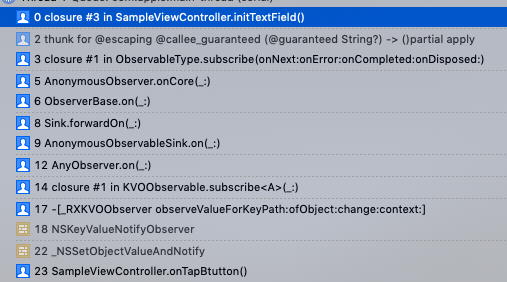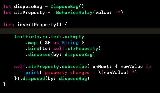 이것도 역시 textFeild.rx.text로 시작하기 때문에 property에 직접 대입하면 이벤트가 발생하지 않는다는점 주의하자.